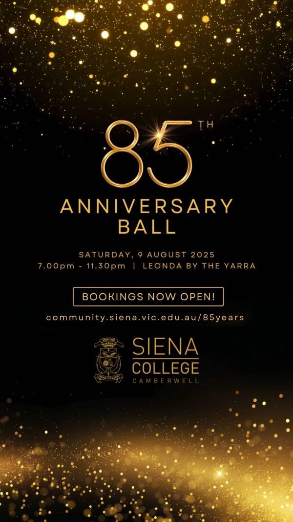 Dear Siena Families, This year marks an exciting milestone! Siena College is celebrating 85 years of educating and empowering young women. As part of this incredible community, we invite you to be part of the celebrations! The Siena Parents' Association warmly welcomes you to join us at the 85th Anniversary Ball. This is a special evening to bring together parents, alumnae and friends of the C...