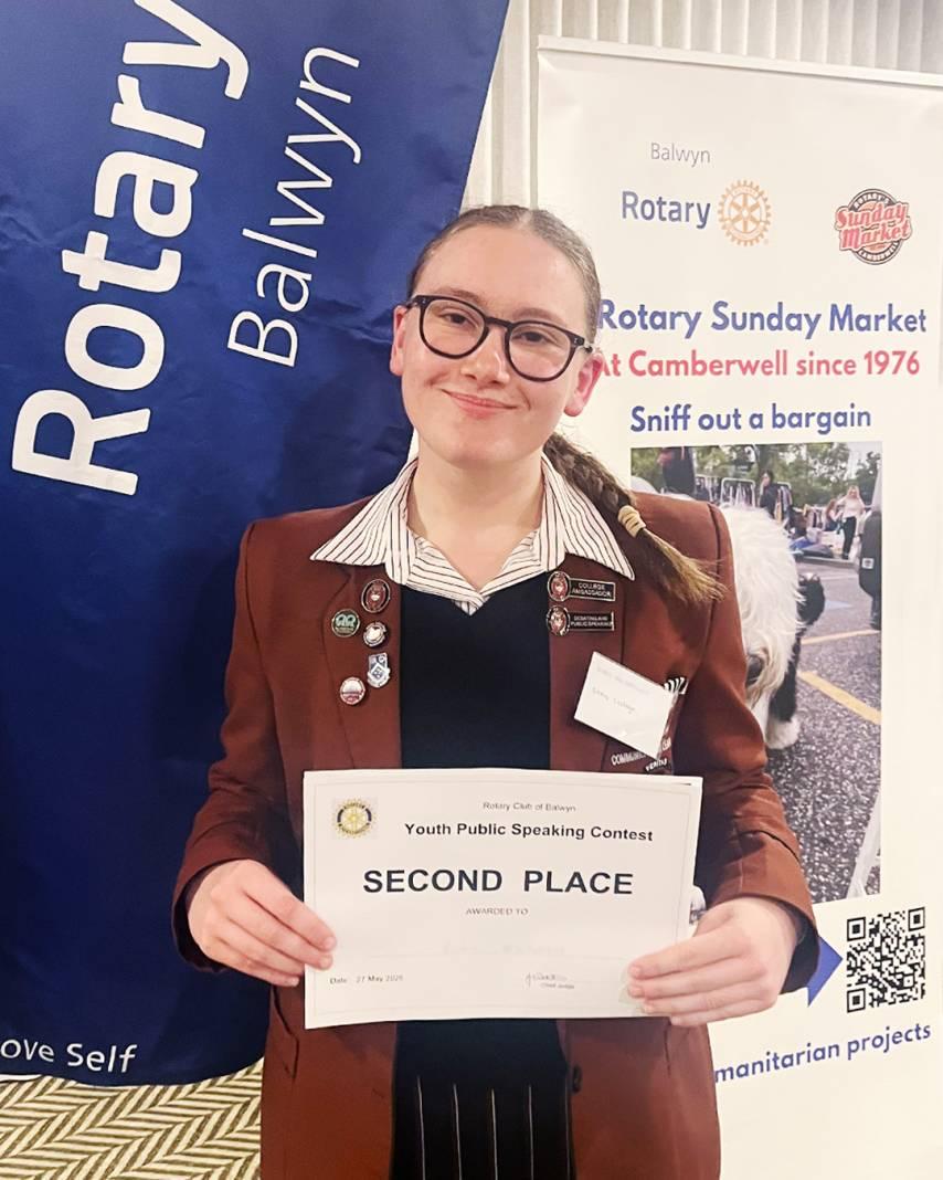 Congratulations to Year 12 Public Speaking Leader, Ciara W who was awarded second place in the Rotary Club of Balwyn Inc.’s Four Way Test Public Speaking Showcase Grand Final. To reach the finals, Ciara delivered a memorised speech that challenged speakers to consider the following precepts: “Is it the truth? Is it fair to all concerned? Will it build goodwill and better friendships? Will it be be...