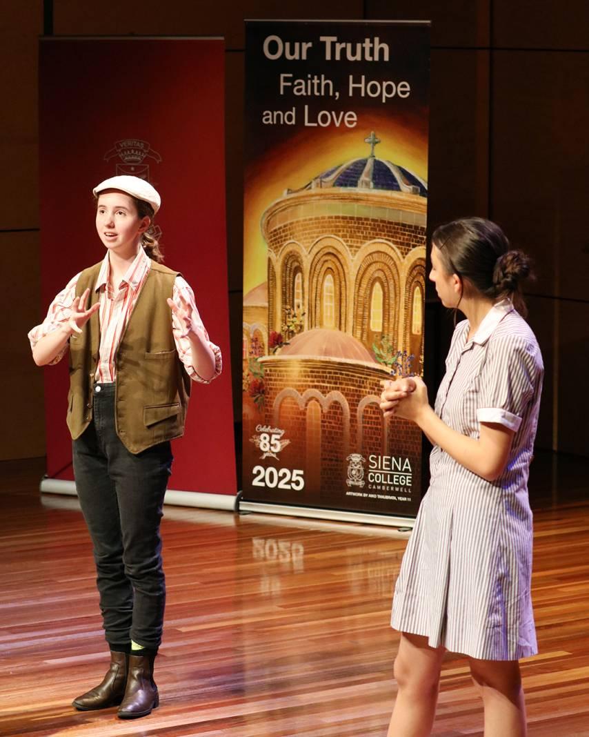 We wish Year 12 Social Justice Leader, Lily G all the best as she prepares to perform at the Top Class Drama and Theatre Studies showcase tomorrow. The Siena community recently had the privilege of a sneak preview of Lily’s performance, compered by our 2025 Drama Captain, Phoebe W. Reflecting on her piece, Lily shared: "I chose a tiny wooden children’s chair as a prop to symbolise Mulga Bill’s pla...