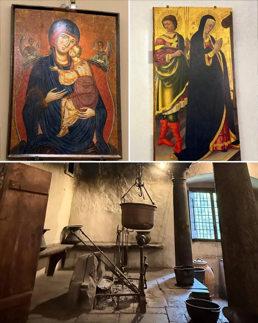 "On Saturday, 4 October, we visited the Badia a Passignano Monastery, a peaceful and historic place of worship for monks. The monastery was surrounded by beautiful gardens filled with animals such as bunnies, squirrels, turkeys, ducks, peacocks and other birds, all helping to keep the garden healthy. We noticed artworks in the courtyard that are still waiting to be restored, and the garden itself featured a maze, green trees and a few small park benches out the front where we could sit and take in the view. The monastery’s architecture was incredible, with stunning paintings, sculptures and glass doors that reflected its deep history. Later in the afternoon, we visited Il Museo di Arte Sacra di San Pietro in Bossolo, where we continued exploring more of the region’s rich art and culture."