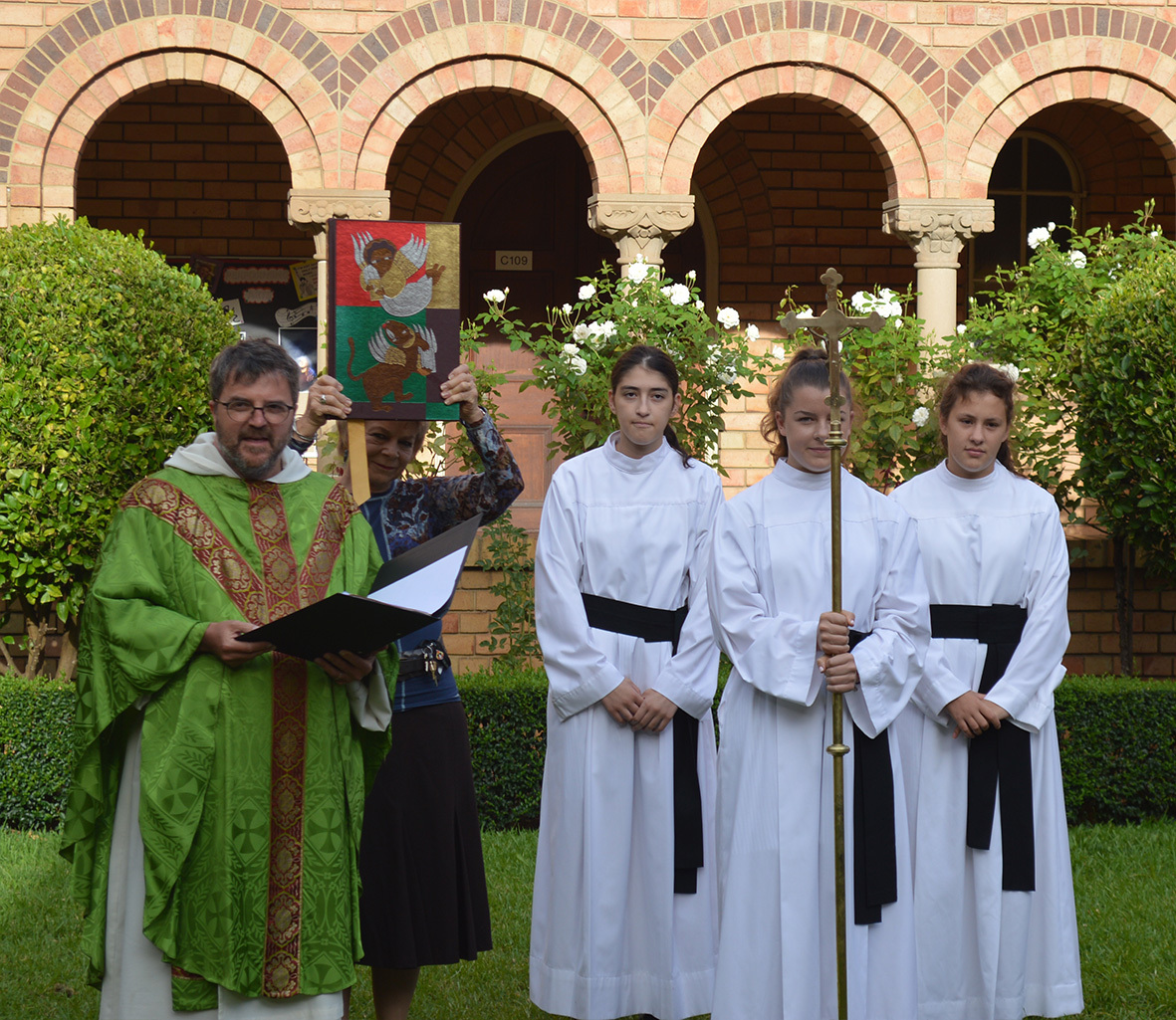 A St Catherine statue, sculpted by Pauline Clayton, was unveiled during the opening of the Piazza di Santa Caterina at the College front.